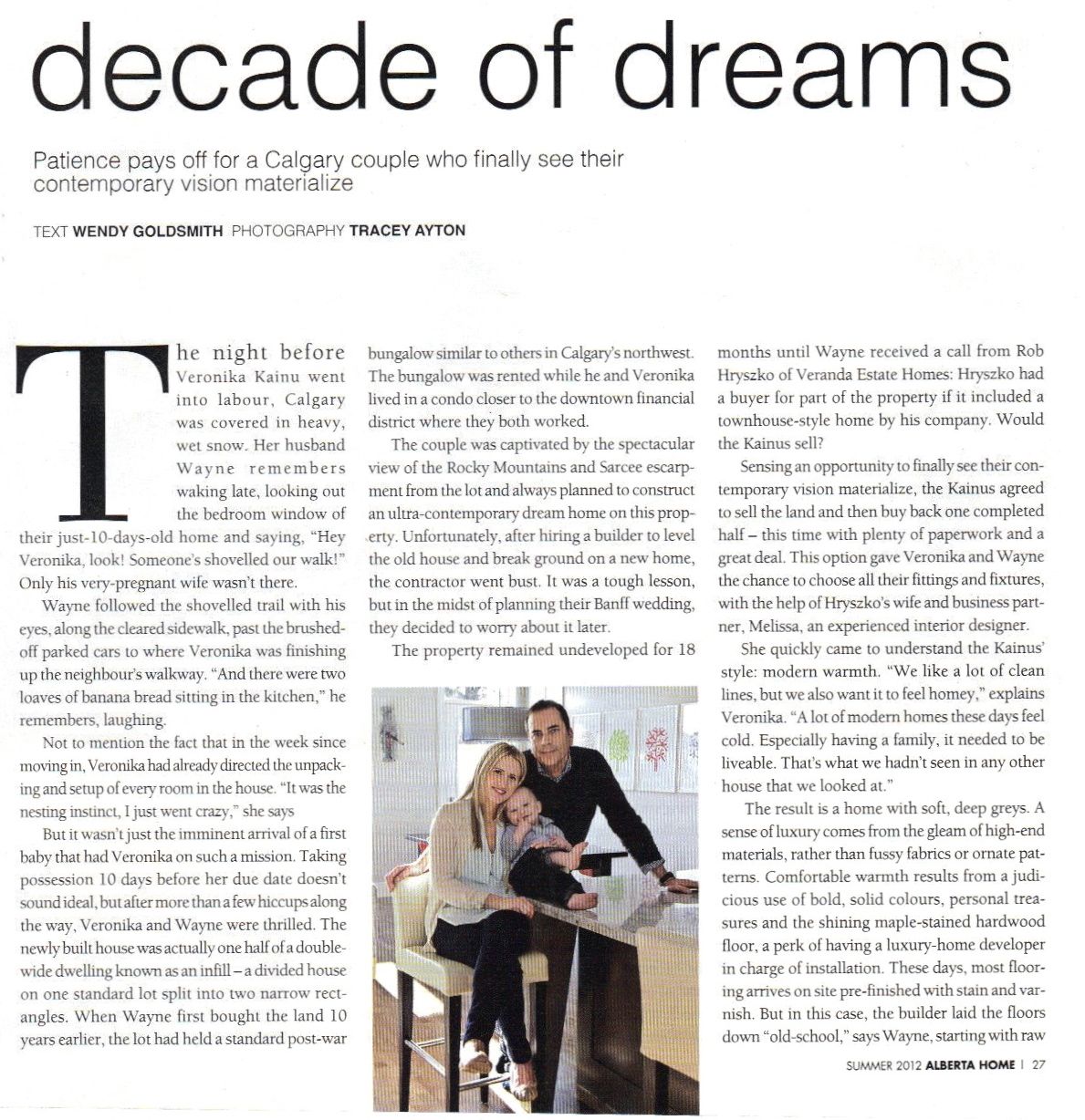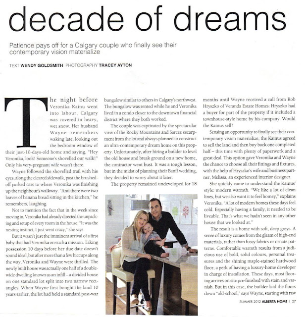 I have been meaning to share this with you for a bit, but life is busy as can be and I finally found the time to scan this article in. Alberta Home Magazine featured a home that we built back in 2011 in the inner-city for an amazing couple, Wayne & Veronika. While it is the final issue of Alberta Home (another magazine says goodbye) I am grateful to Tracey Ayton for such stunning images, the magazine for featuring one of our homes in a beautiful 6 page spread, and the clients for being incredible.