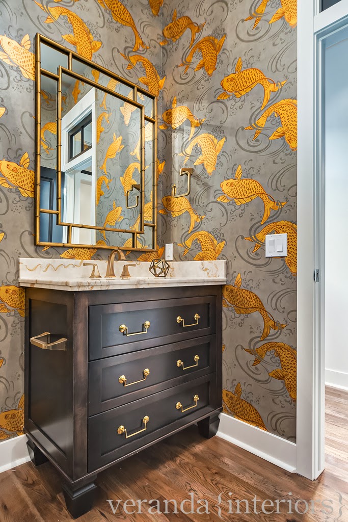 Today is possession day for our clients custom home in Hillhurst, I will be sharing some image over the next little bit, but not too much as this home will be photographed again once it is all furnished with all of the amazing items that the clients have. The first room I wanted to share with you is the amazing powder room. The clients love wallpaper and color and this room showcases that well.