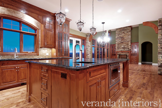 The 48″ Sub Zero built-in fridge is fully integrated with alder panels that match the cabinetry in the home, a great way to still have an amazing fridge without the large amount of stainless…perfect for a more traditional home. In the island we built pull out baskets in the island for the items that they use in the kitchen daily.
