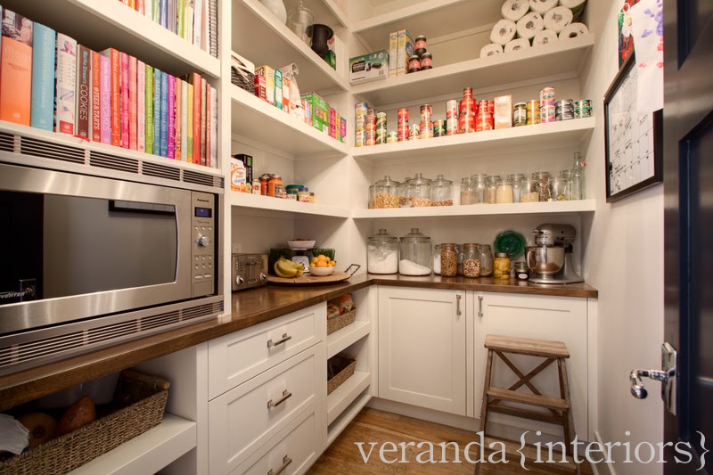 Yeah, I love my pantry too. The pull out baskets are now a staple in every pantry that we do, perfect for storage of onions, crafts for the little, and easy access to snacks for them as well. Since I have an addiction to cookbooks I built-in an area above the microwave for my collection.