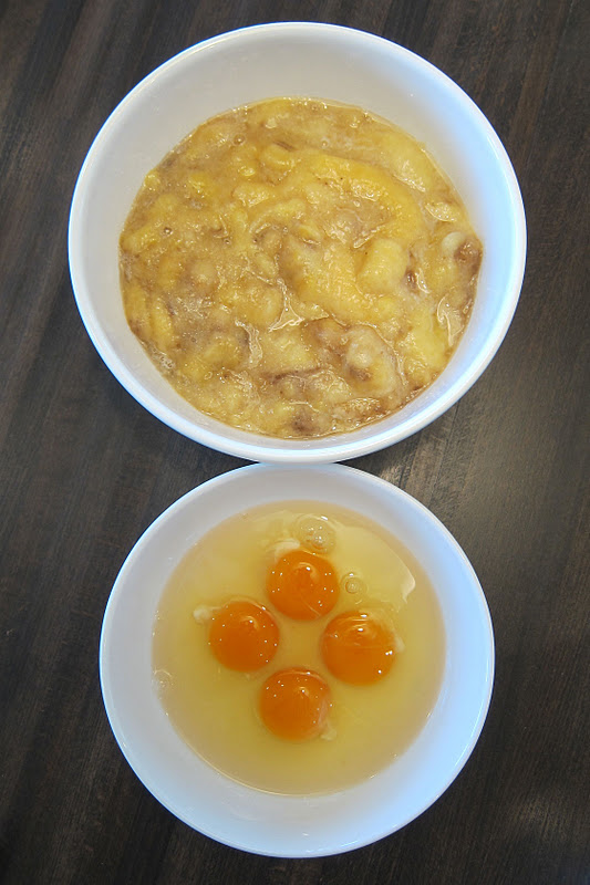 Sift together dry ingredients, slowly add into wet mixture and combine, do not over-mix.